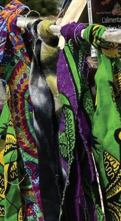 Mobile en tissu, auquel s’accrochent des instruments qui montent et descendent par un système de poulies
