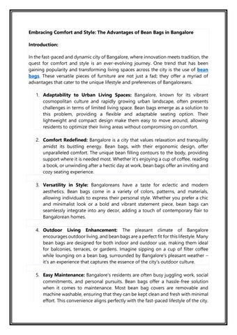 Transforming Your Space: The Art of Decorating with Customized Furniture in Bangalore Your living space is a canvas waiting to be adorned with elements that reflect your personality and style. When it comes to decorating your home or office in Bangalore, opting for customized furniture is a trend that not only adds a unique touch but also ensures that every piece resonates with your preferences and needs. 1. Personalization Beyond Limits One of the most significant advantages of choosing customized furniture is the ability to personalize every detail. From the dimensions of your sofa to the type of wood used in crafting your coffee table, the power to decide lies in your hands. In a city like Bangalore, where individuality is celebrated, customizing your furniture allows you to create a space that stands apart from the ordinary. 2. Tailored to Your Space Bangalore, known for its diverse architecture, offers a range of living spaces, from compact apartments to spacious homes. Off-the-shelf furniture might not always fit seamlessly into your unique layout. Customized furniture, on the other hand, is tailor-made to fit your space like a glove. It ensures that every nook and corner is utilized efficiently, creating a harmonious and well-balanced environment. 3. Reflecting Your Style Every piece of furniture tells a story, and when you opt for customization, you become the storyteller. Whether your style is contemporary, traditional, or a fusion of both, customized furniture allows you to choose materials, colors, and designs that resonate with your aesthetic. Bangalore's eclectic vibe finds its perfect match in the diversity of custom-crafted furniture options available. 4. Quality Craftsmanship Investing in customized furniture is synonymous with investing in quality. In Bangalore, where craftsmanship is highly valued, opting for personalized pieces ensures that skilled artisans craft your furniture with attention to detail and precision. The result is not just a piece of furniture; it's a work of art that stands the test of time. 5. Functional Design Functionality is key, especially in a bustling city like Bangalore where spaces often serve multiple purposes. Customized furniture allows you to design pieces that are not only aesthetically pleasing but also highly functional. Whether it's a storage-friendly bed or a multipurpose coffee table, tailor-made solutions cater to your specific needs. 6. Sustainability Matters Bangaloreans have a growing awareness of the importance of sustainable living. Opting for customized furniture gives you the opportunity to choose eco-friendly materials and practices.