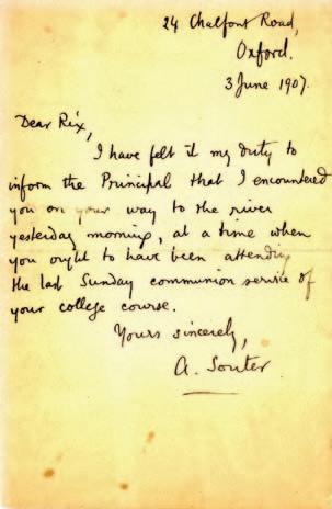 One of Mansfield’s first students, James Vernon Bartlet, became a lecturer in Early Church History at the College and in 1900 became a professor. Nicknamed ‘the last of the Early Fathers’ and ‘the elongated saint’, Bartlet was extremely tall and scholarly, and his speech consisted of extraordinarily convoluted sentences. A keen tennis player, he would often invite his opponent to a quick knock-up with the words: `Before we start the match proper, I will knock the ball to you, and you will knock the ball back to me, but, as it were, without contention.’