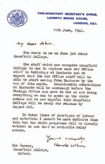 The new Principal, John Marsh, went to see the University registrar in 1954 and explained Mansfield’s dilemma. He was listened to sympathetically, but disappointingly was told that no funds from the University Grants Committee could be made available before 1960 at the earliest. However, the registrar pointed out that if Mansfield became a permanent private hall (PPH) – a status made possible following a 1918 University statute and taken up at that point only by Campion Hall (Jesuit) and St Benet’s Hall
