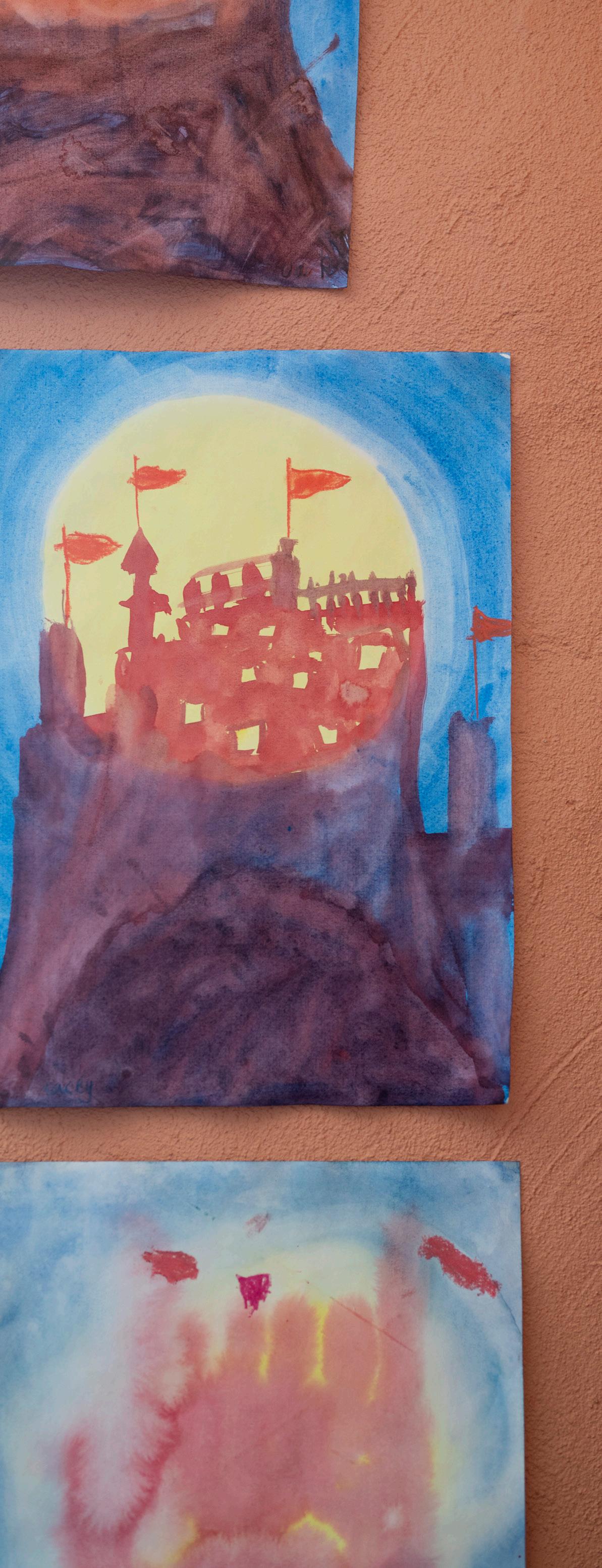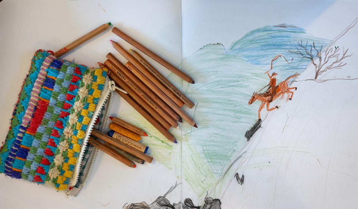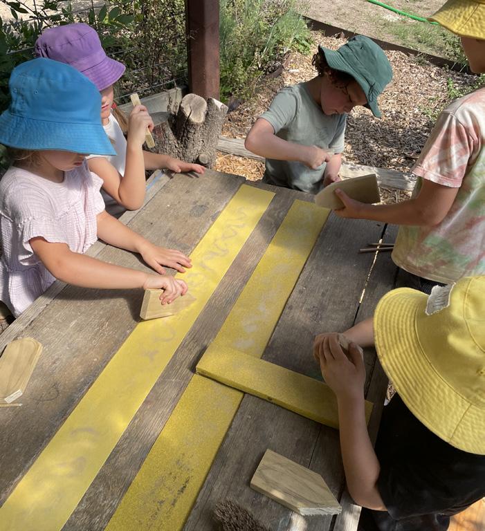 creating medieval beasts with wire and modroc and expressive clay candle holders. Their optical illusion drawings led into perspective geometry studies, and their embroidered, machinesewn dilly bags were made in preparation for next year’s Outdoor Education program. Their continued work on the bogong moth mural helped establish a permanent outdoor installation on the wall of our Darrendal classroom.
