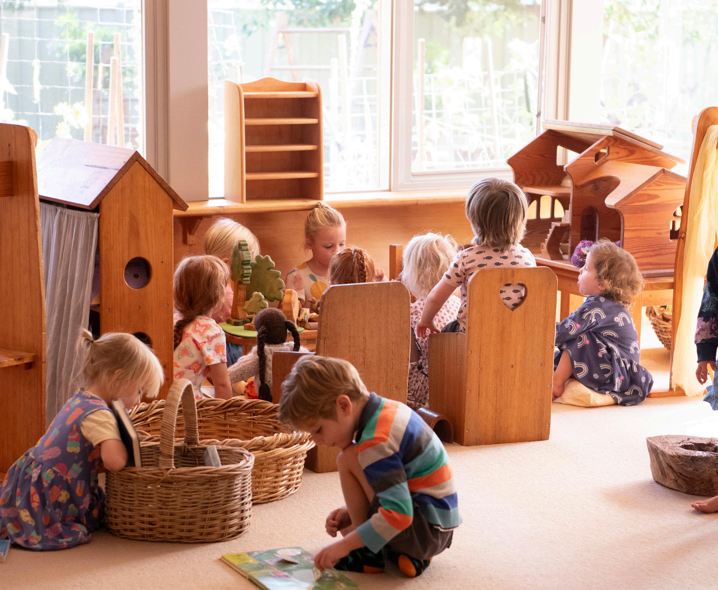 Parents and caregivers are always nearby as the warm, familiar thread that the children need to move into their morning at playgroup. We sing songs about the seasons in our Morning Circle and enjoy calling the Candle Fairy to join us for morning tea. The beautiful gardens, trees and sandpit in the ‘big school’ are always enjoyed during outside playtime, and we delight in the tiny treasures that Mother Nature offers us. We end our morning together with a told story and puppet play, which is always special and deeply reverent. It is a wonderous time for the little children as they learn to navigate and explore a new environment and predictable morning rhythm. The end of each term heralds a wonderful seasonal celebration, with our sweet little playgroup festivals. As we move through the seasons, the young children awaken slowly and naturally in a gentle, nurturing environment, growing into their kindergarten and school years here with ease.