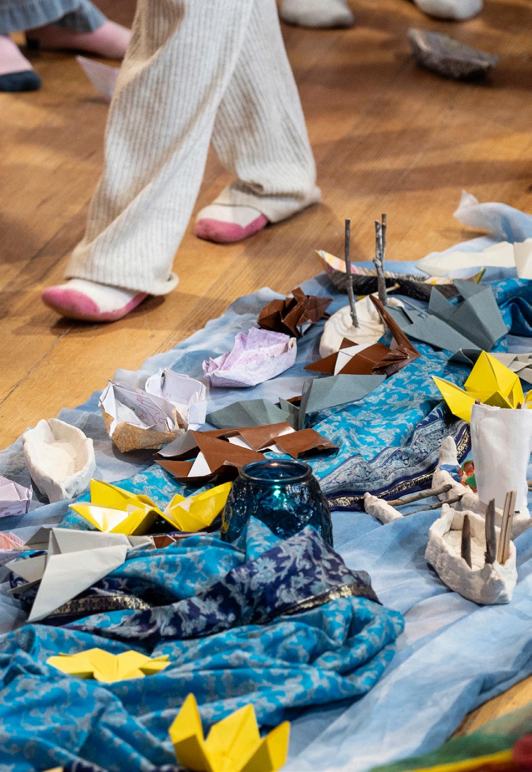 and song related to the festival and make handcrafts. In Autumn we make beautifully decorated lanterns, origami stars and snowflakes and candleholders in Winter, garlands in Spring, and Christmas cards and candle decorations through Advent. This year we had Aunty Angela join us for our Reconcilliation Action Week gathering where we brought to life the 2025 theme Bridging Now to Next. Class 4 recited from heart Adam Goodes book Somebody’s Land and all students made models of traditional canoes that they placed around our rainbow bridge in the centre of the hall. It was such a powerful festival and following it Aunty Angela sent us the following reflection: