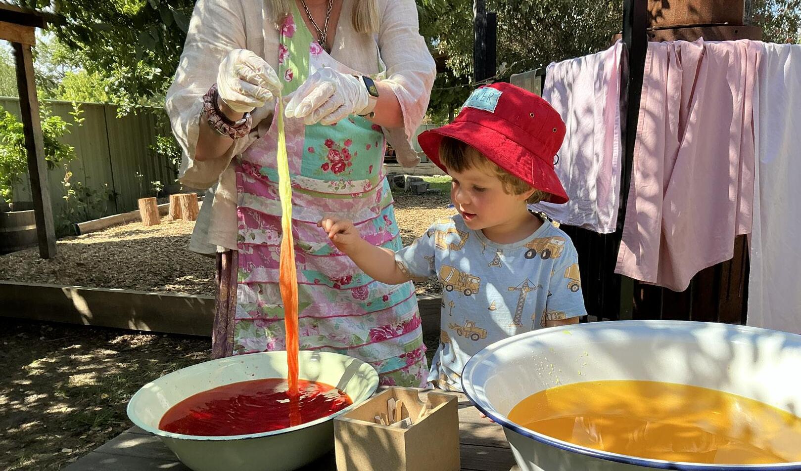 The journey into Morning Star Kindergarten begins in the Nelawon room, with the Little Robins Playgroup. Each week we welcome a gathering of families with a warm mug of chai for parents and caregivers, and some roly-poly dough to be kneaded into delicious sourdough buns by the children. Our bread is baked in our little magic oven and is always greatly anticipated by morning tea time, with the smell of warm, crunchy bread filling the room. Before long a favourite toy is found by each child, that will be part of their visit each week. Interactions between toddlers begin to take place, learning names, sharing toys and playing alongside one another. Older children that are attending will help with cutting fruit, wiping down and then setting the table with doilies and vases of fresh flowers.
