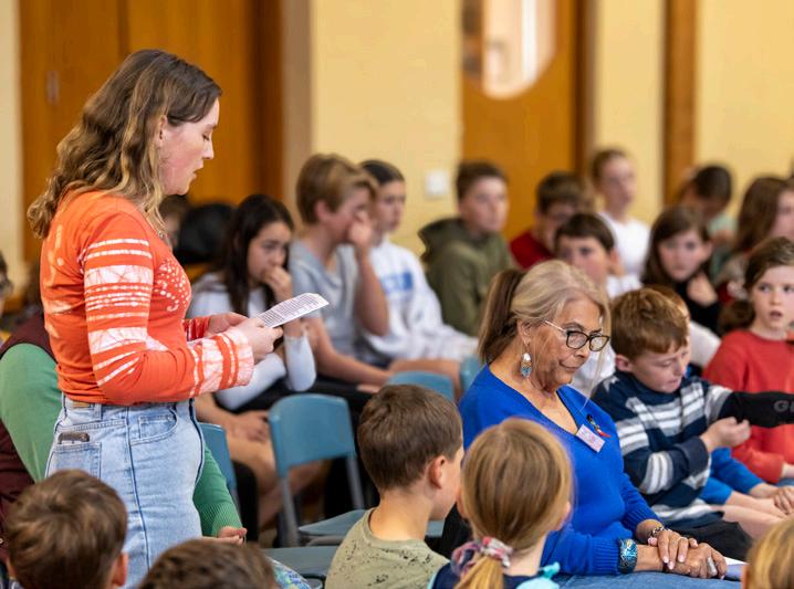 The week kicked off with Ella from Year 11 and the primary students serenading our special guest, Wiradjuri woman Auntie Anne Marie, with the familiar song ‘From Little Things Big Things Grow’. Following this was the primary focus of the week, the weaving project “Reclaiming the Void, Weaving Country Whole”. This project involved people and communities from across Australia sending in circular rugs to be woven together, to craft an extensive Indigenous dot painting. This artwork will eventually be draped over an abandoned mine in Ngalia country, WA. It was inspiring to see each class from our school joyfully contribute to this project and to weaving the country whole. To close the assemblies, I (Willow) had the honour of speaking to the secondary students. I focused on the rich history of the Mansfield area and expressed the sadness we feel for the loss of 50,000 years of Indigenous knowledge. Ultimately, these assemblies were more than just events; they were heartfelt moments of learning and connection to the land and cultures of our region.