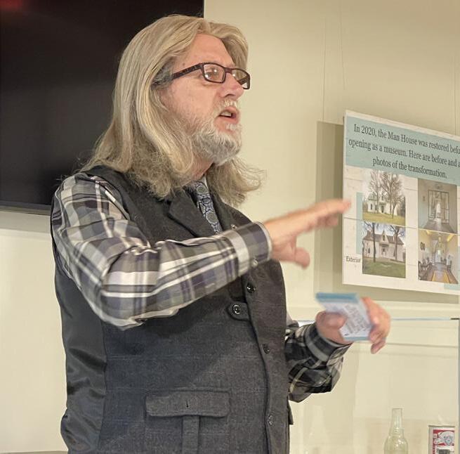Retired U.S. Deputy Marshall and author D. Preston Davidson speaks on the need for historical research to ensure accuracy in his books at a History Talks session at the Man House Museum in April 2024. Mr. Davidson is author of a series of period novels on the U.S. Marshall Service in the 1800s in Texas.
