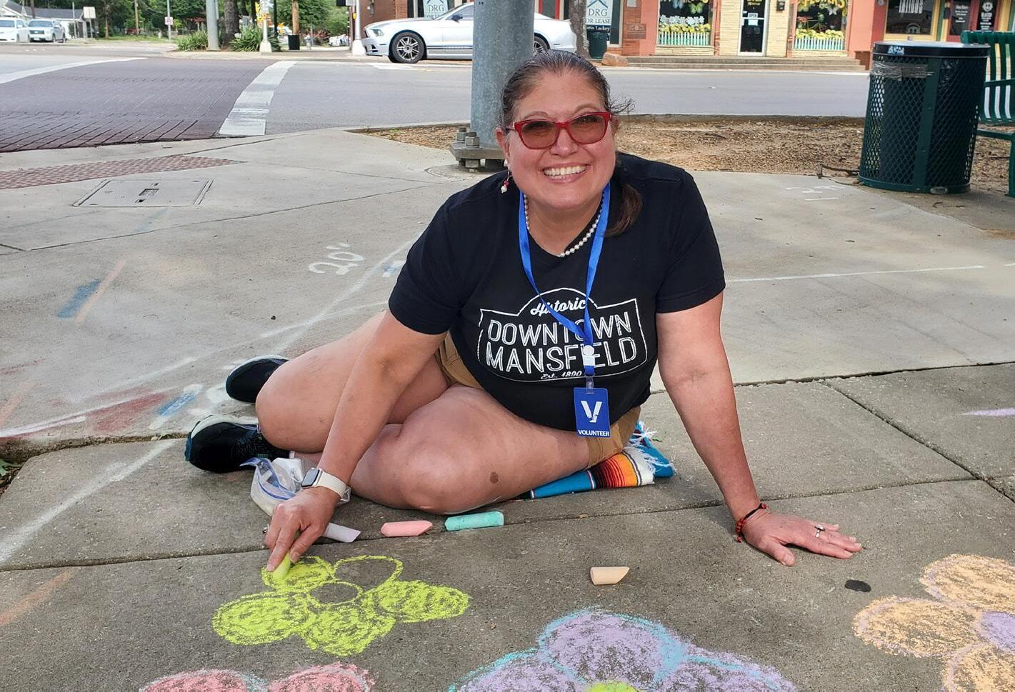 Guided by preservation volunteer Carolyn Wright, our team involves the community with preservation through a range of events. A retired teacher and current historical interpreter at Nash Farm in Grapevine, Carolyn leverages her expertise to craft engaging experiences that connect with both Mansfield’s residents and visitors. Pictured above, Carolyn sketches at the Chalk the Walk contest on historic Main Street.