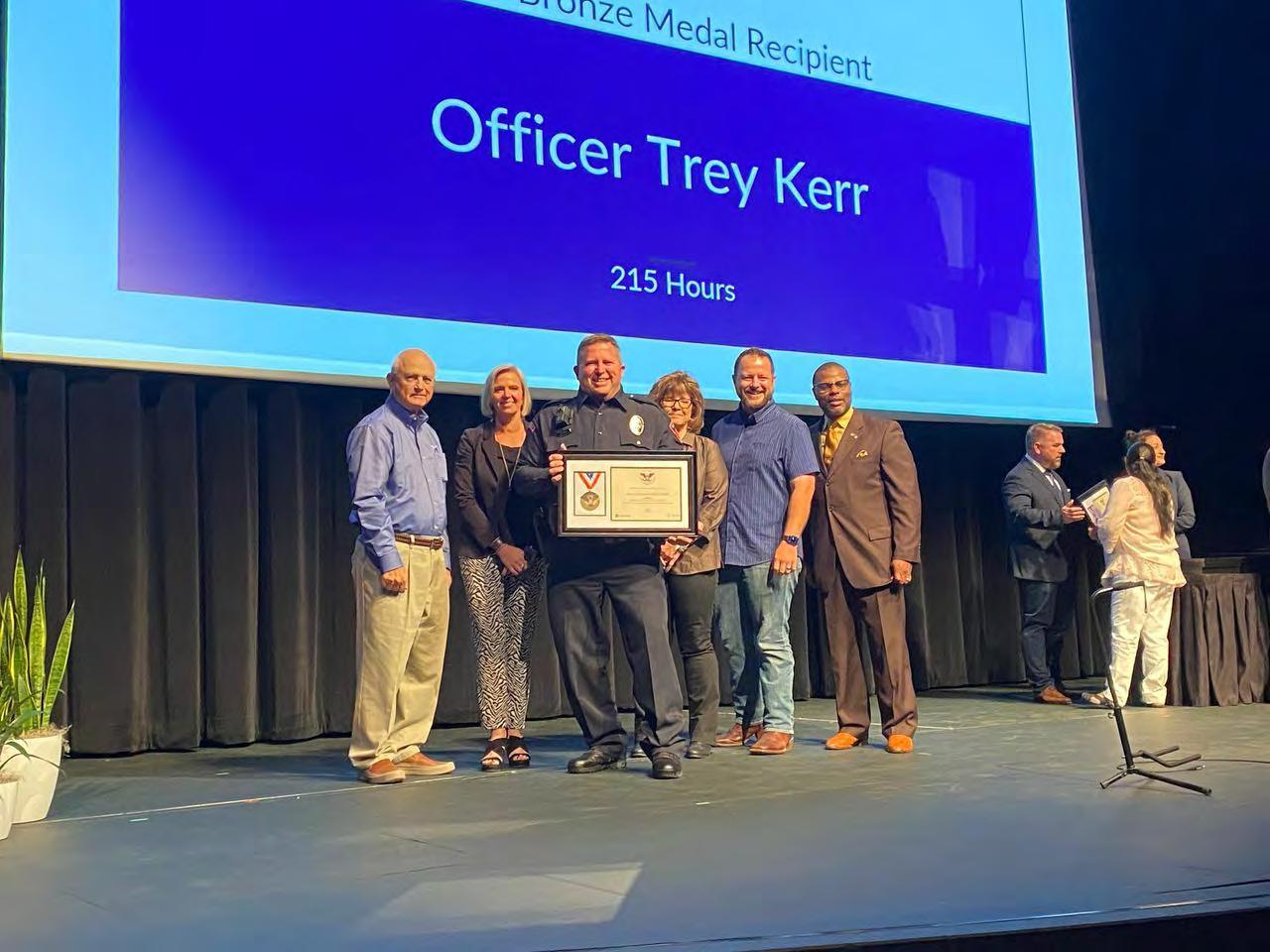 Officer Jones received the Jesse FernandezFront Line Leadership Award from City Manager Joe Smolinski. This award is given to those who are dedicated to serve selflessly.