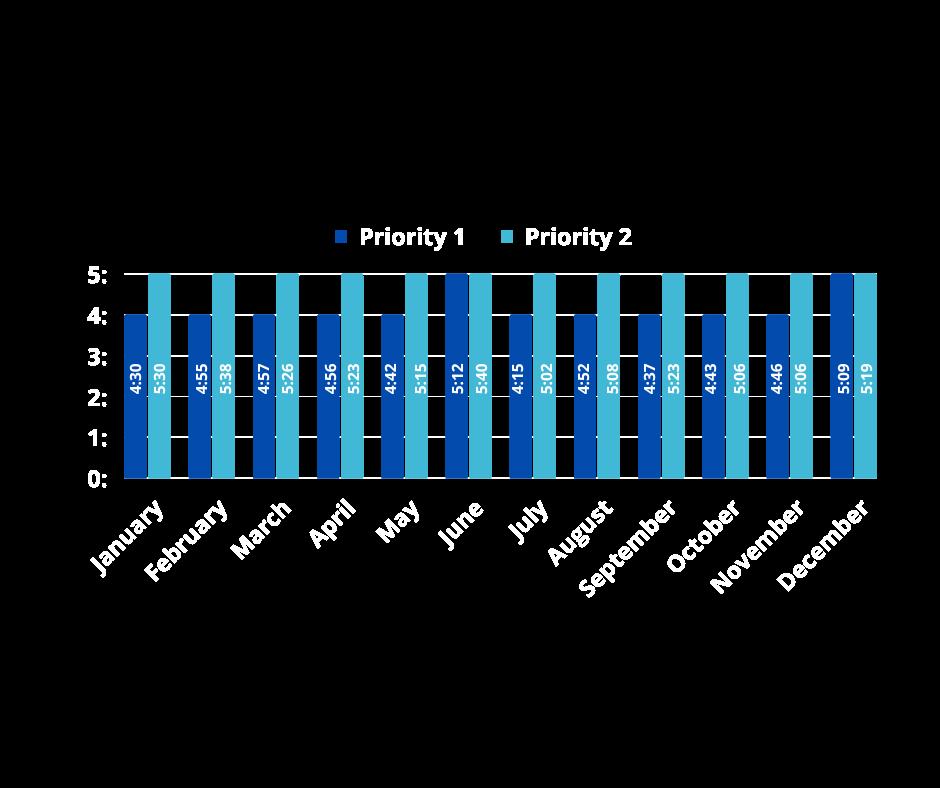 Priority 2: Callsshowing no signsof becoming violent but doesinvolve a disturbanceor suspiciousactivity. Response timesare defined asthe number of seconds from when a call isdispatcheduntil aresponding unitarrives on scene.