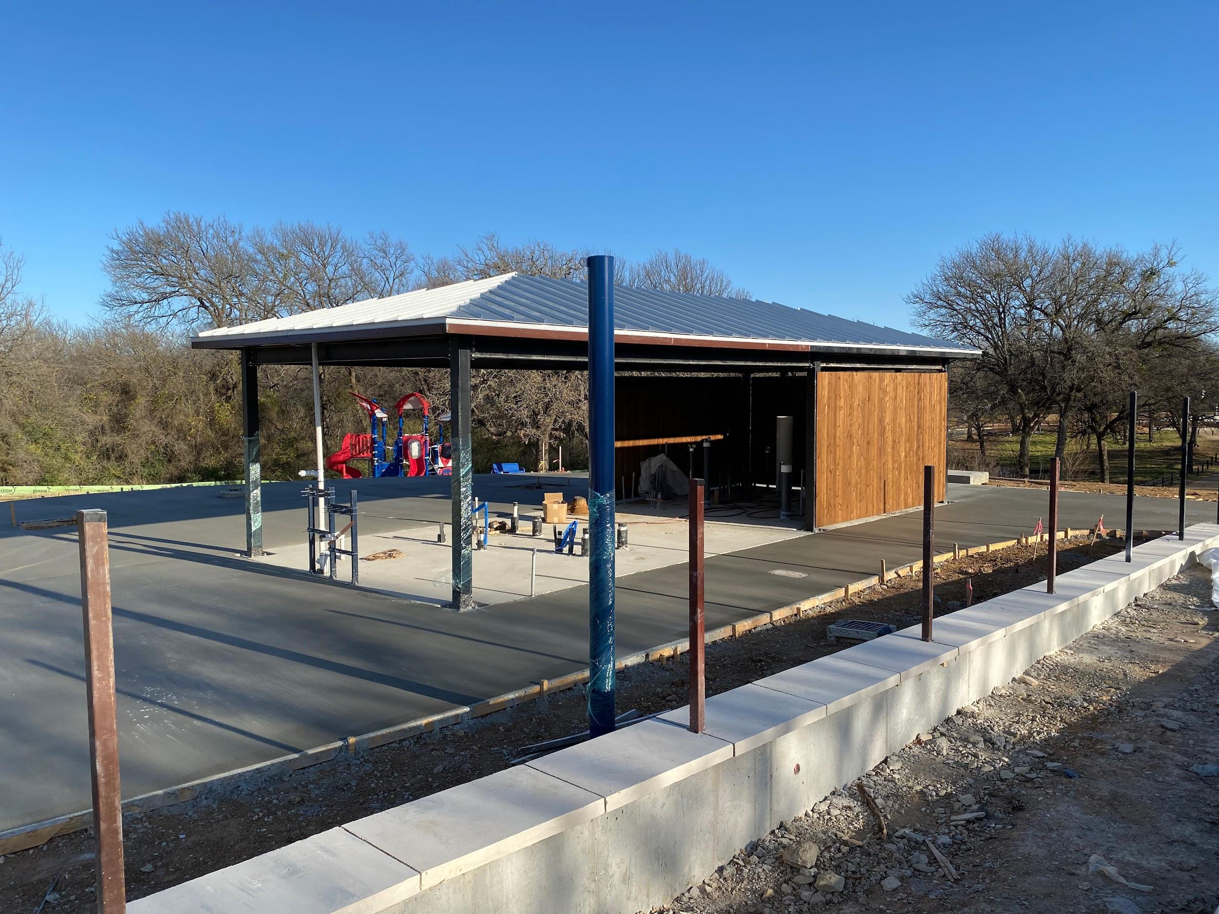 CURRENT UPDATE Construction continues to work towards the project closeout. The last several weeks have posed some challenges with weather delays due to rain, sleet, mud and freezing temperatures The basketball project is 95% complete with final electrical service and turf establishment still remaining. Mechanical, electrical and plumbing work inside the restroom pump house building is underway, and the walks and concrete surrounding the splash pad have been poured The block work for the restroom building has been delayed d h h S ff i ki i h b h l k h h d l