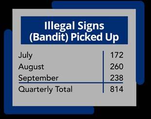 The Regulatory Compliance Department refers to illegal signs as “bandit” signs. The following table details the number of illegal signs they collected each month during this quarter.