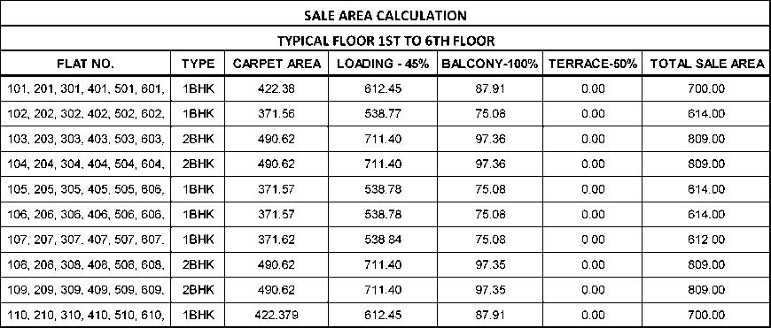TYPICALFLOORPLAN(1STTO 5TH)&(6TH)SALEAREA CALCULATION