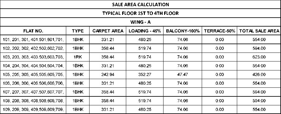TITLE:BUILDINGNO.-01 TYPICALFLOORPLAN(1STTO 5TH)SALEAREACALCULATION