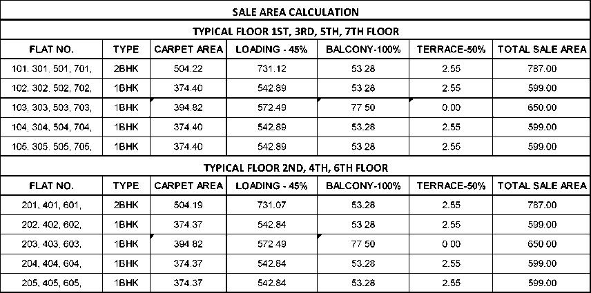 TYPICALFLOORPLAN(1ST,3RD, 5TH,7TH)&(2ND,4TH,6TH) SALEAREACALCULATION