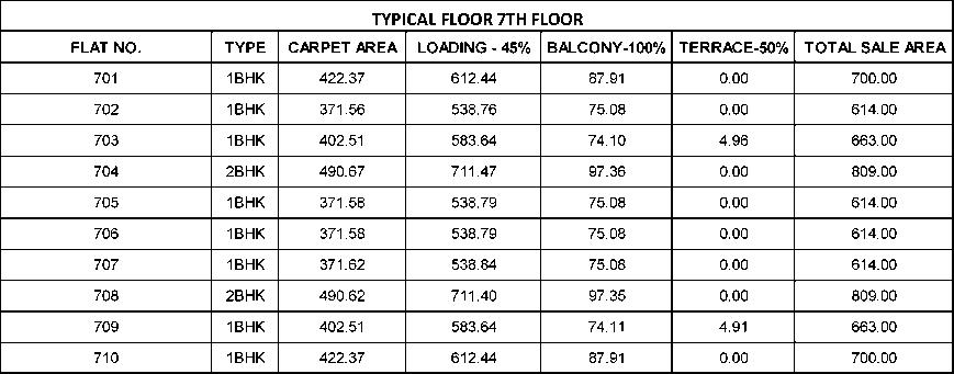 TYPICALFLOORPLAN(7TH) SALEAREACALCULATION