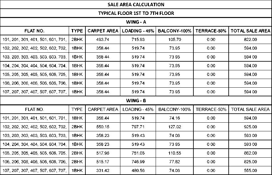 TITLE:BUILDINGNO.-01 TYPICALFLOORPLAN(1STTO 7TH)SALEAREACALCULATION