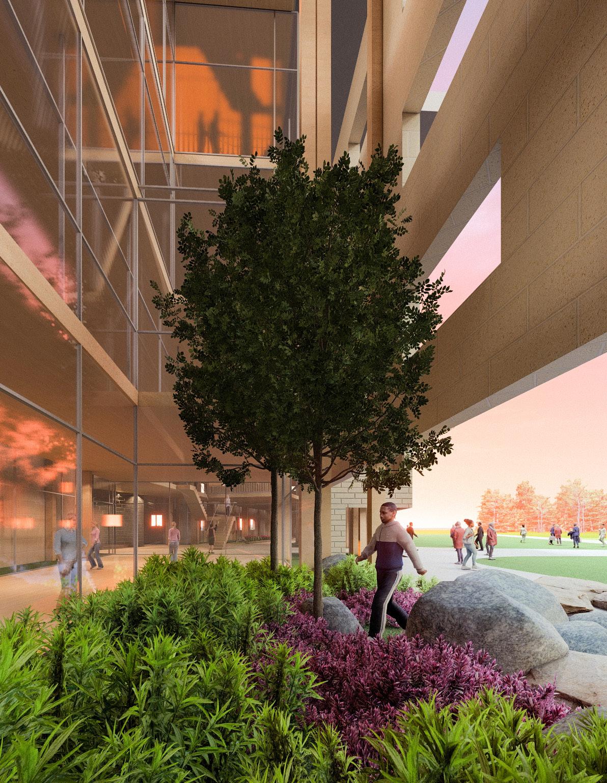 Our project transforms the Singer Pavilion into a beacon of wellness. The body heals by removing the decrepit interior structure, preserving and reinforcing the skin, and inserting a new, brighter, healthier structure inside. The mind heals by implementing Living Building Challenge standards are incorporated, adopting best practices around healthy building design and programming.
