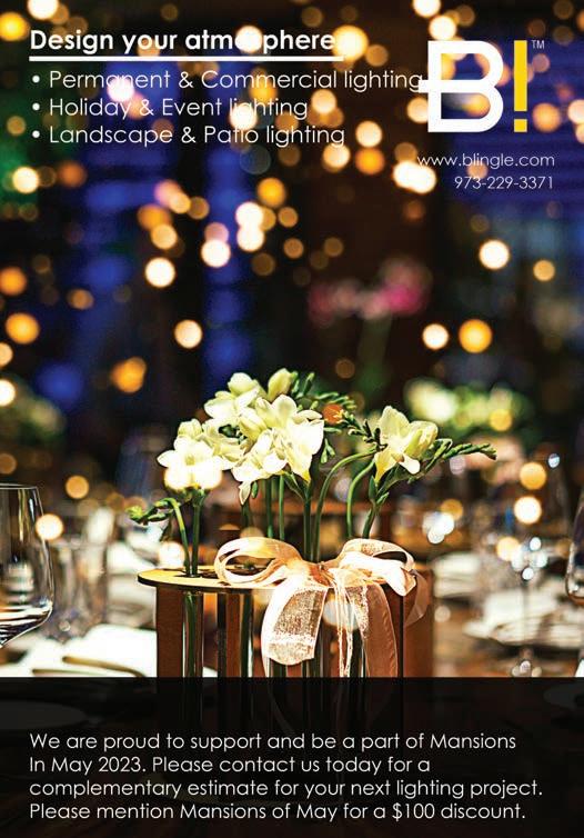 Behind the scenes, we have a great deal of support from our corporate, individual, industry, and in-kind sponsors, who are listed in this journal. ey are loyal and sign on early to support our cause. Speaking of loyalty, Atlantic Health System routinely provides us with support, but especially during Mansion in May with legal assistance, shuttle buses, insurance coverage and more.