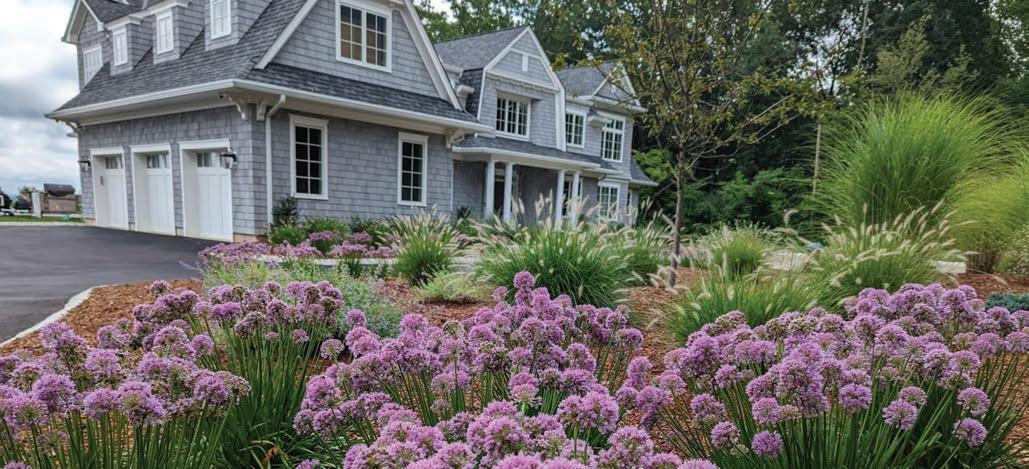 hile completing this journey across the property, Miller’s Bend provides a point to delve into the past before heading back to reality. The history of the house, the barn and the land itself are all worth reflecting on and learning from. iven the placement of the barn and the e isting waterways one cannot help but recall a di erent time and what took place here. This secluded seating area, tucked away between the barn and the waterways, provides a place to rest and enjoy the surroundings while not detracting from the natural vista. The use of boulders to build up the pea gravel seating area also provides a natural feel while further helping to bridge the spaces between the fire pit area and the barn. The reworking of the existing boulders and soil updates the naturalistic swale and helps maintain a healthy drainage area. Surrounded by a mix of natural and formal vegetation, the greenery gives a natural feel while maintaining that elegant look that so perfectly matches Wildfair.