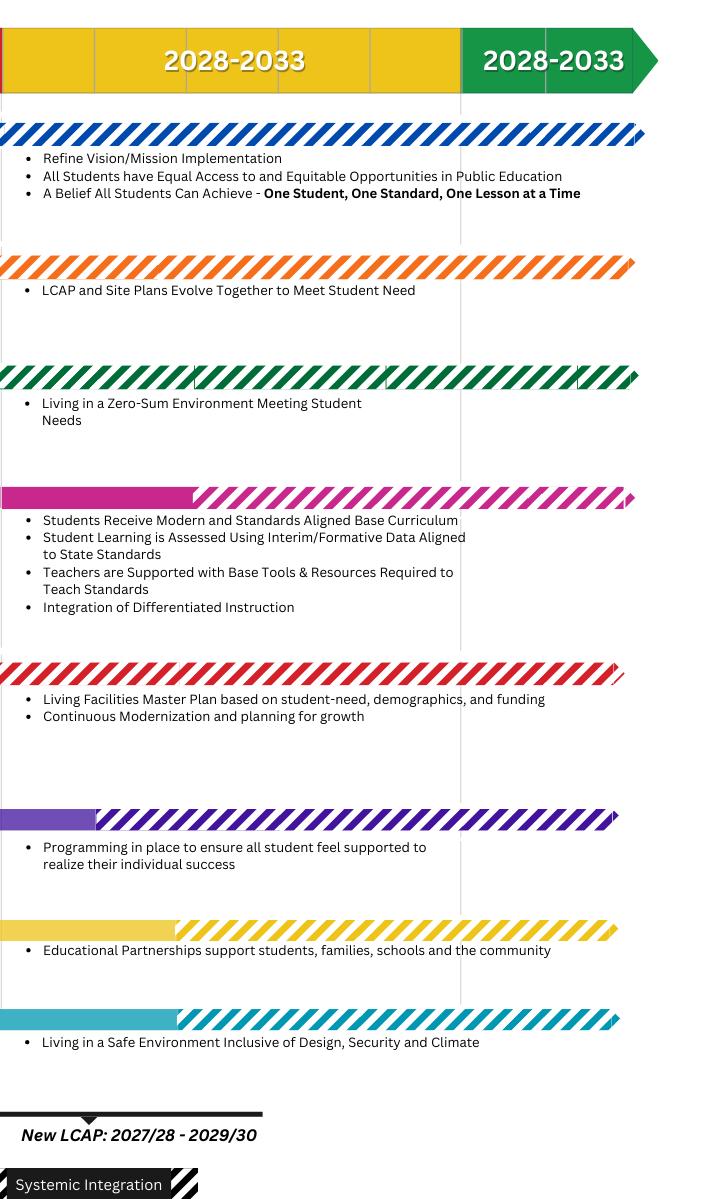standards is ongoing. In the 2023/24 school year, district and whole community educational partners will begin to draft the next three-year strategic plan: the Local Control Accountability Plan. This comprehensive plan accounts for every student’s identified learning need through actionable steps, services, and multi-tiered systems of support.