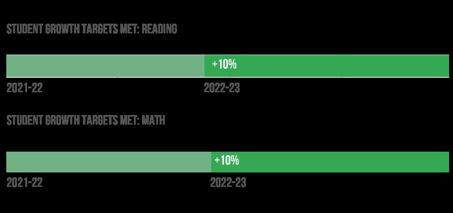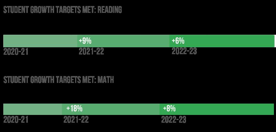 So far, Great Valley has experienced a 15% increase in the number of students showing growth in reading from Fall 2020 to Spring 2023, and a 26% increase in math.
