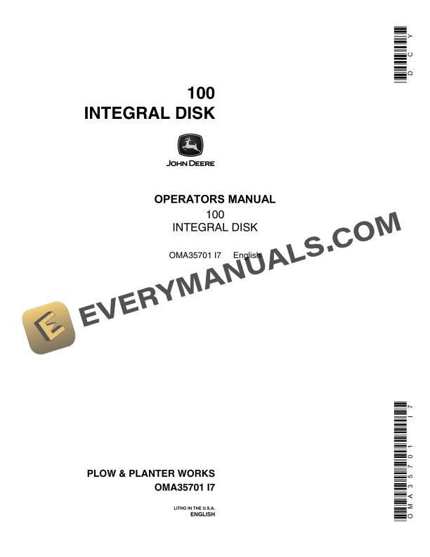 John Deere 100 INTEGRAL DISK Operator Manual OMA35701 by manualgroup - Issuu