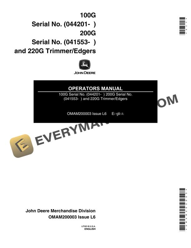 John Deere 100G 200G and 220G Trimmer Edgers Operator Manual OMAM200003