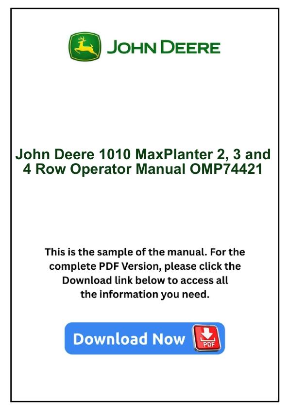 John Deere 1010 MaxPlanter 2, 3 and 4 Row Operator Manual OMP74421