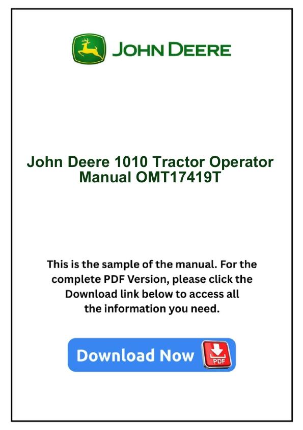 John Deere 1010 Tractor Operator Manual OMT17419T
