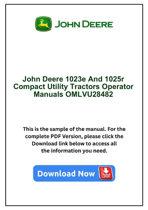 John Deere 1023e And 1025r Compact Utility Tractors Operator Manuals OMLVU28482