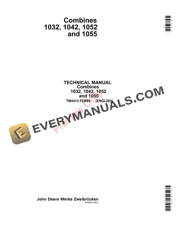 John Deere 1032, 1042, 1052 and 1055 Combines Technical Manual TM4413 01FEB89
