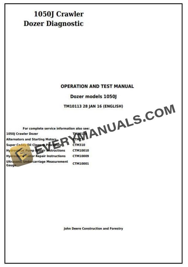 John Deere 1050J Crawler Dozer Diagnostic Operation Test Manual TM10113