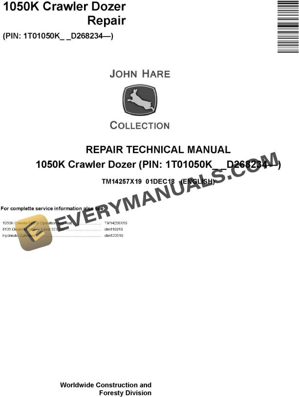 John Deere 1050K Crawler Dozer Repair Technical Manual TM14257X19 by manualgroup - Issuu