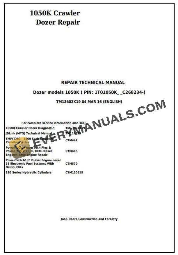 John Deere 1050K Crawler Dozer Repair Technical Manual TM13602X19 by manualgroup - Issuu