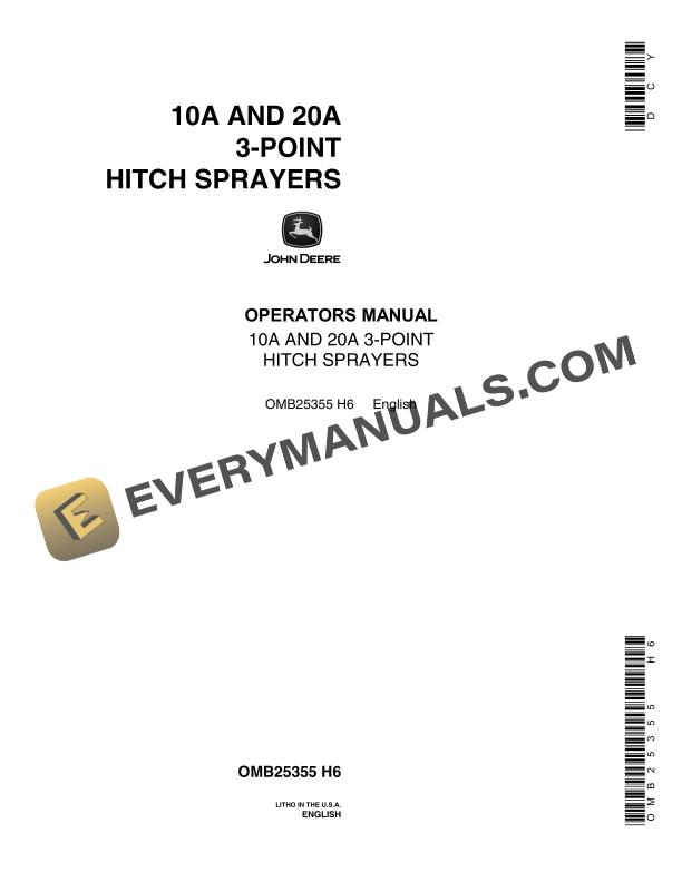 John Deere 10A AND 20A 3-POINT HITCH SPRAYER Operator Manual OMB25355