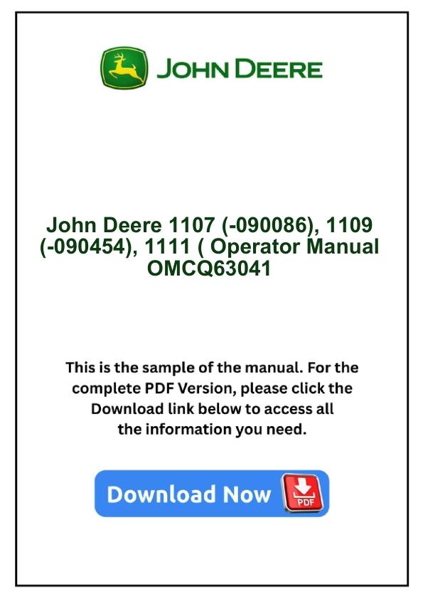 John Deere 1107 (-090086), 1109 (-090454), 1111 ( Operator Manual OMCQ63041 by manualgroup - Issuu