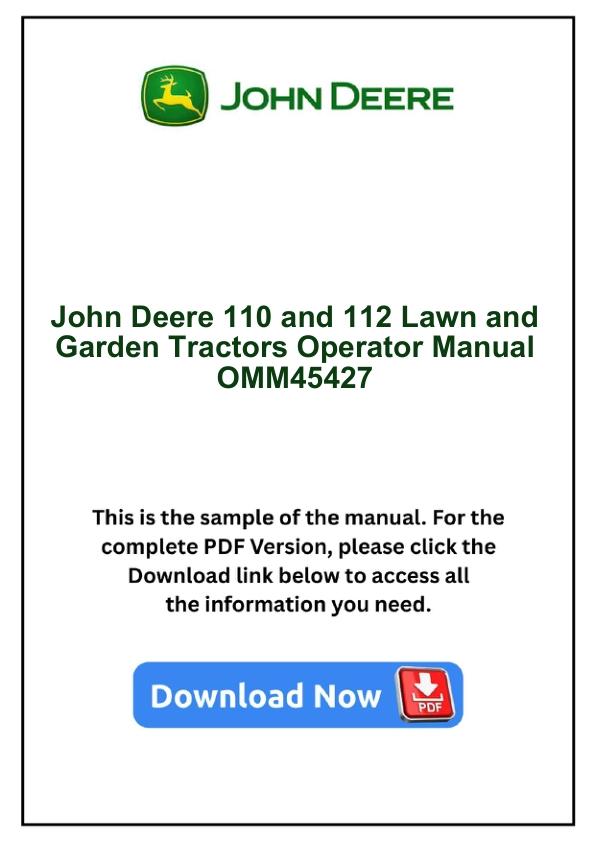 John Deere 110 and 112 Lawn and Garden Tractors Operator Manual OMM45427