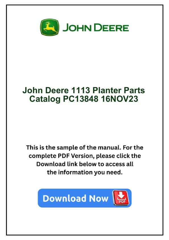 John Deere 1113 Planter Parts Catalog PC13848 16NOV23