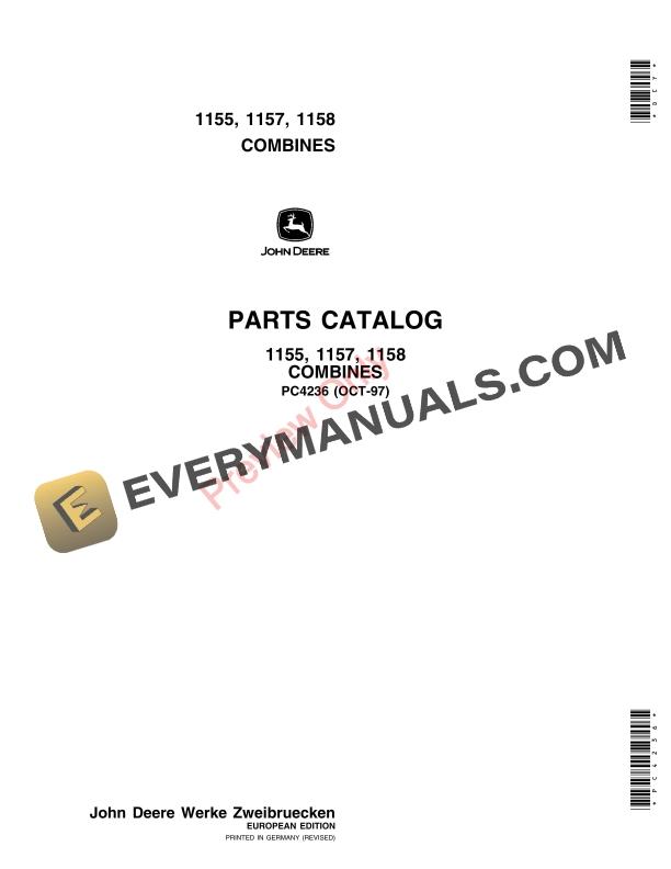 John Deere 1155, 1157 and 1158 Combines Parts Catalog PC4236 01OCT97