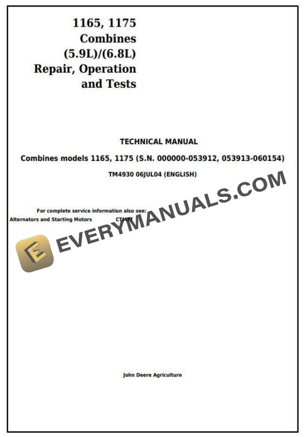 John Deere 1165 1175 Combine 5.9L 6.8L Technical Manual TM4930 by manualgroup - Issuu