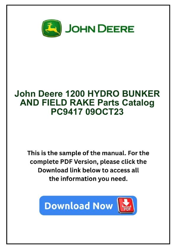 John Deere 1200 HYDRO BUNKER AND FIELD RAKE Parts Catalog PC9417 09OCT23 by manualgroup - Issuu