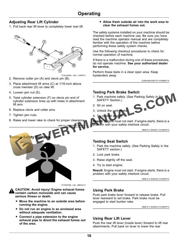 John Deere 1200 Hydro Bunker Rakes Operator Manual OMUC25079