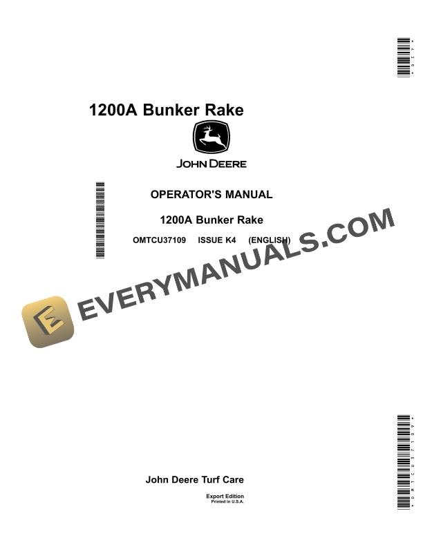 John Deere 1200A Bunker Rakes Operator Manual OMTCU37109