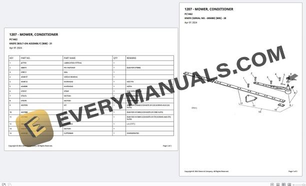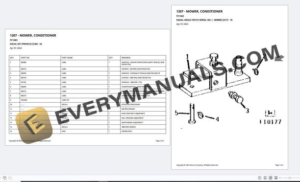 John Deere 1207 Mower Conditioner Parts Catalog PC1462 09MAY11 PDF
