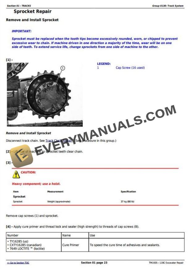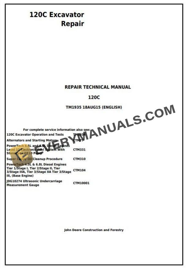 John Deere 120C Excavator Repair Technical Manual TM1935 PDF