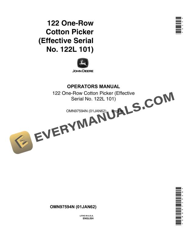 John Deere 122 One-Row Cotton Picker Operator Manual OMN97594N by manualgroup - Issuu