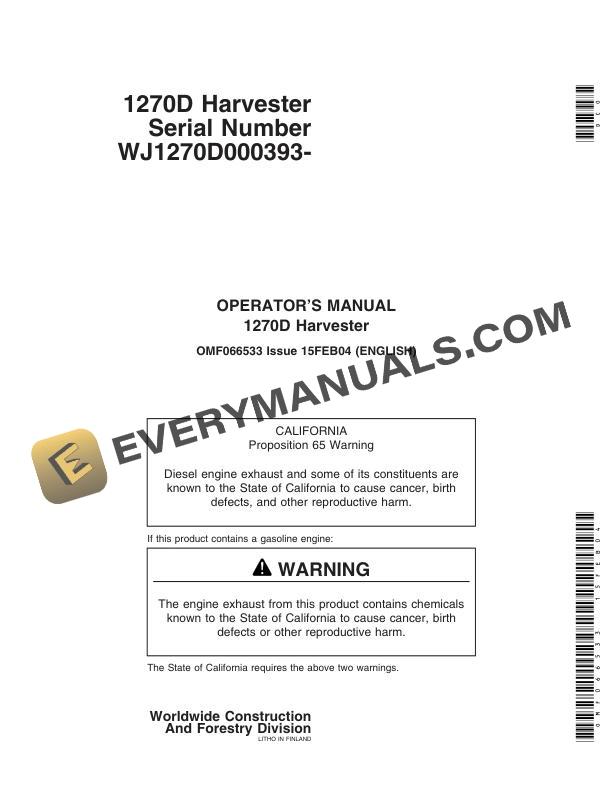 John Deere 1270D Harvester Operator Manual OMF066533