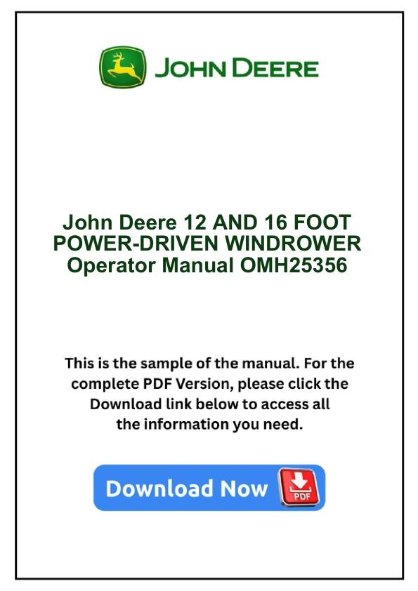 John Deere 12 AND 16 FOOT POWER-DRIVEN WINDROWER Operator Manual OMH25356 by manualgroup - Issuu