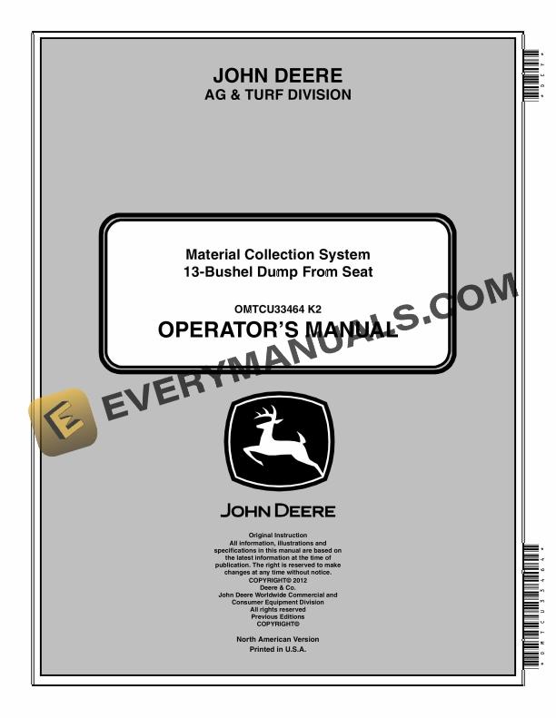 John Deere 13-Bushel Dump From Seat Material Collection System Operator Manual OMTCU33464 by manualgroup - Issuu