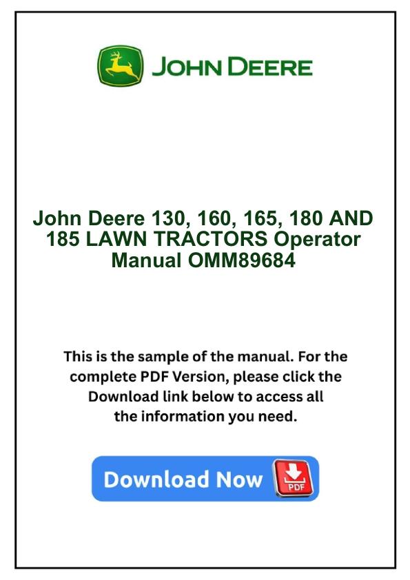 John Deere 130, 160, 165, 180 AND 185 LAWN TRACTORS Operator Manual OMM89684 by manualgroup - Issuu